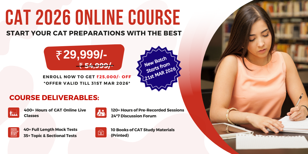 | 21-Mar-2026 | CAT 2026 online Course | 29,999/- | REGISTER NOW | |