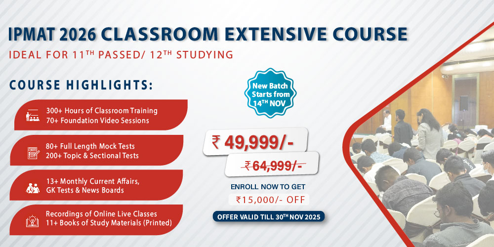 | 14-Nov-2025 | IPMAT 2026 CLASSROOM COURSE | 11/40 (*Available) | FRIDAY - SUNDAY | REGISTER NOW | |