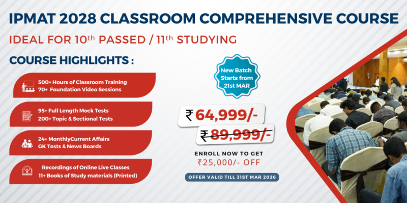 | 16-Mar-2026 | IPMAT 2026 CLASSROOM COURSE | 08/40 (*Available) | MONDAY-FRIDAY | REGISTER NOW | |